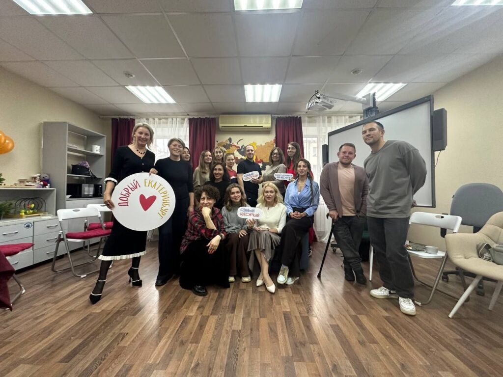 Участники встречи: Вадим Дегаев (БФ «Первый детский хоспис), Олег Федчук (АНО «Благое дело»), Юлия Крапивко (АНО «Малая родина — город для жизни»), Матрена Щапова (РОО «Аистенок»), Римма Мочалкина (БФ «Люблю и благодарю»), Катерина и Леонид Медовиковы (РООСО «Паром»/проект Тарелка Добра), Лариса Бучельникова (АНО «Семья детям»), Алена Ямушева (АНО Омам), Светлана Блинова (БФ «Добрый Екатеринбург»), Анна Мартьянова (Православная служба Милосердия/приют Нечаянная радость), Яна Колмогорова (СРОВД «ПроДобро»), Мария Костарева и Ксения Шейнис (БФ «Менора»).