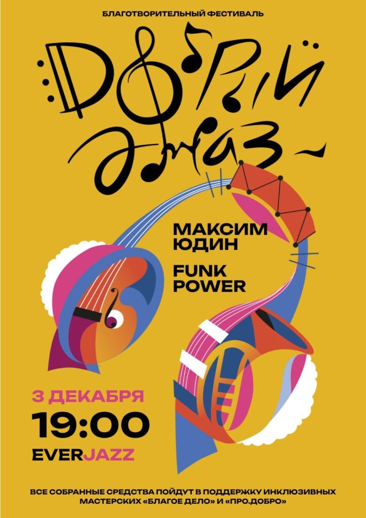 3 декабря 2025 с 19:30 до 21:00 в джаз‑клубе EverJazz (Тургенева, 22) пройдет благотворительный фестиваль «Добрый джаз», приуроченный к региональной акции #НашЩедрыйВторник и Международному дню инвалидности.
